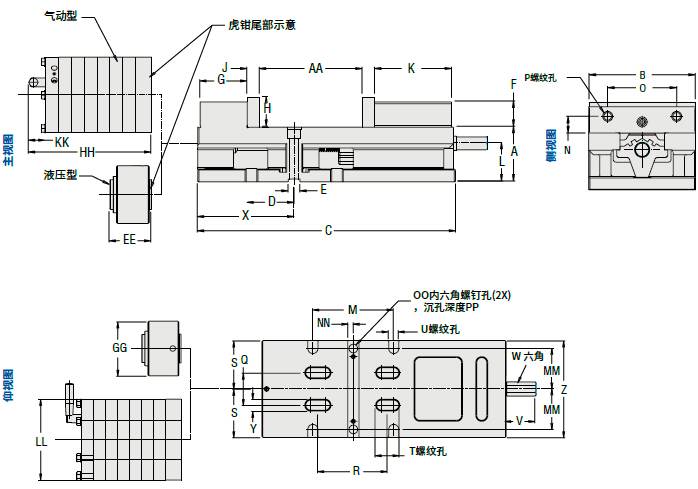 • 气动型在夹紧零件时,接触柔和、精度高且重复性好。